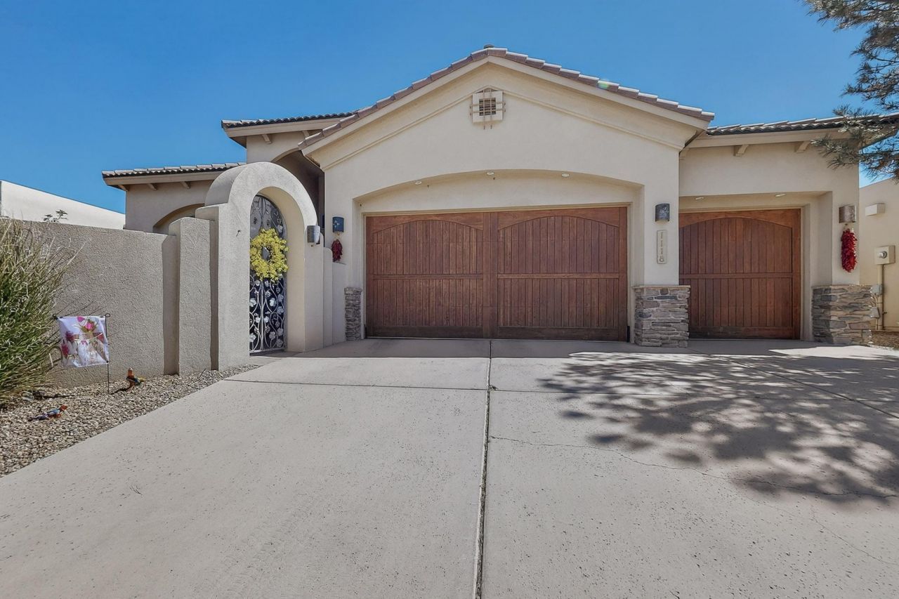 Step into something extraordinary. Nestled inside an exclusive gated community, this fully custom Tiffany home is a rare blend of craftsmanship, privacy, & beauty featuring breathtaking unobstructed Sandia Mountain & Bosque views. The moment you enter through the private courtyard, you're welcomed by soaring 12-foot ceilings, rich tongue-and-groove wood beams, & a warm, inviting great room anchored by a stunning fireplace. Spa-like primary suite w/ 2-way fireplace & walk-in closet separate tub&shower, oversized laundry room, & meticulously designed finishes. At the heart of the home, a chef's dream kitchen awaits complete with a Sub-Zero refrigerator, custom cabinetry, granite countertops, & the perfect layout for entertaining. Step outside to your private patio oasis on the Rio Grande.