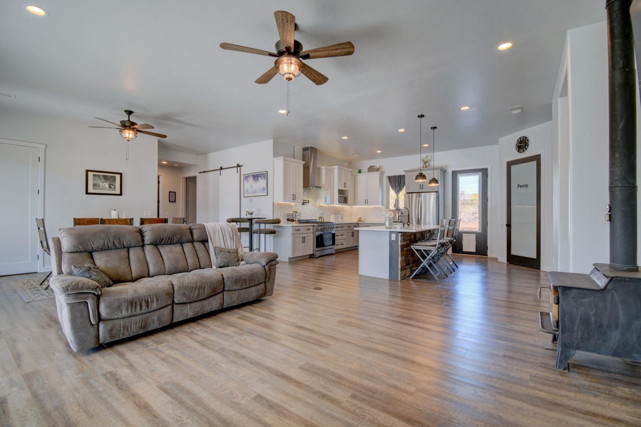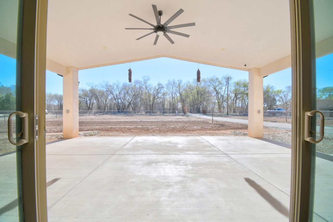 Presenting a truly stunning home that blends luxury finishes with everyday livability on nearly 1.5 acres. Pipe fencing and automatic gate welcome you to a serene, private setting. Offering 10-foot ceilings with 8-foot custom doors. Expansive open floor plan with a chef's kitchen, quartz countertops, a kitchen island with a deep sink, a 6-burner professional gas stove, stainless steel appliances, a walk-in pantry, and finsished with a coffee bar. Refrigerated air, recessed lighting, ceiling fans, double-pane thermal windows, instant hot water and a RO water filtration system. The master suite offers his-and-her sinks, a walk-in shower, generous walk-in closet and 9-foot ceilings. Covering this dream is a standing seamless metal roof with a huge front patio & Irrigation Well!