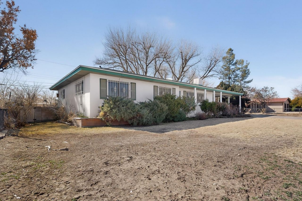 This gem in the heart of the North Valley, boast 3 bedrooms 2 baths with a sunroom and private back yard with lush landscaping with tons of flowers, and bushes, a garden plot, a large pecan tree and a well to irrigate. This home includes a shed and a 2 car carport. Backyard access for RV. Come see and use your imagination to make this home yours.Roof and HVAC system was replaced in 2023. There was a fire in the attic in 1986, repairs where done . Structural Enginers report forthcoming.