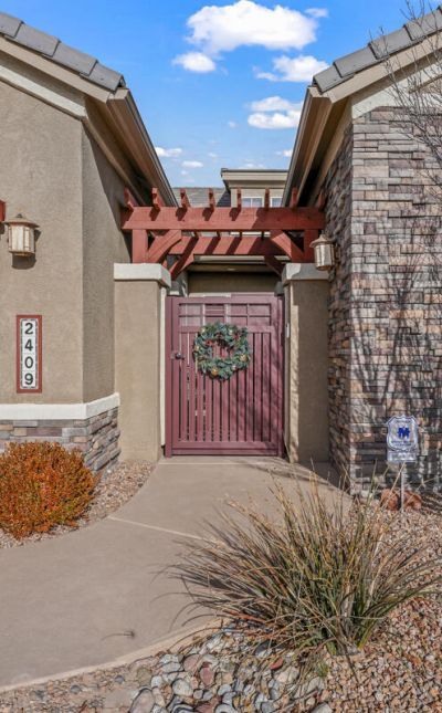 Welcome come to 2409 Desert View NE. This stunning Mariposa home offers a sanctuary for those seeking the best of high desert living. Perched on an exclusive lot, the home features amenities and upgrades throughout. Features include: high ceilings, a gourmet kitchen with top of the line cabinets, tile floors, abundant windows and natural light throughout. The kitchen area steps out to a covered patio with expansive views of the Ortiz & Sandia Mountains. Other features include a finished/oversized garage, entry courtyard, ideal office/guest room, high energy efficiency rating, large lot backing on open space & much more!
