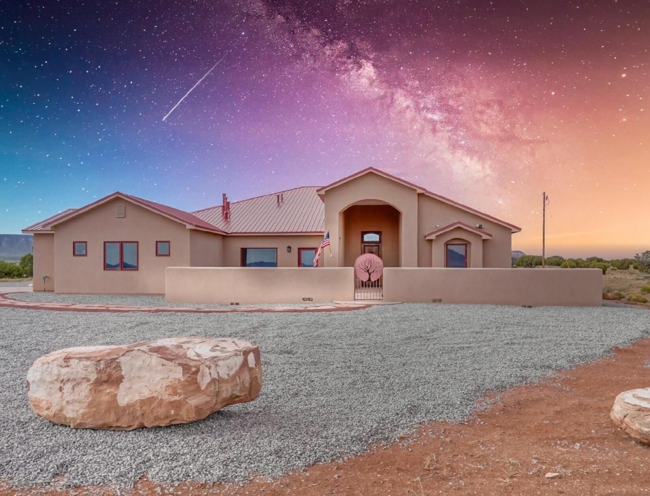Welcome home to your ranch retreat. This exquisite property is your dream come true. 150 Acres and 3500 Sq Ft home currently set up as 3 bedrooms, 2.5 bath, 2 professional offices and a gym it has the possibility of 5 bedrooms. Outstanding views in any direction outside of the home but inside you will find the comfort of a custom fireplace in the heart of the living room which is open to the custom kitchen and dining room. Kitchen boast Marble counters and Stainless appliances Primary suite features 2 walk in closets, his and her vanities walk in shower and jetted garden tub. Two professional offices for the power couple one has attached half bath and the other has attached gym. North facing courtyard has great views of the Manzano Mountains and south patio views of the Chupadero gap.