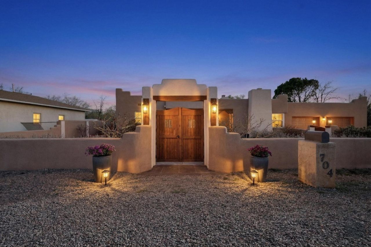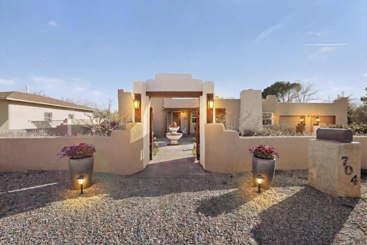 **OPEN HOUSE** 3/28 10 am - 2 pm. This home combines natural beauty with traditional New Mexico charm located in the heart of the Village of Los Ranchos de Albuquerque in the authentic North Valley. Enjoy the rural charm, agricultural heritage, and a strong sense of community. With 4 bedrooms, 4 bathrooms, 4 fireplaces, 2 living areas, In-law quarters, office/study, and a flex room. Perfect for families and entertainers alike. Architectural highlights include authentic Southwestern design, hardwood flooring, vigas, wood & beam ceilings, arched doorways, stunning wood doors, traditional adobe walls, and kiva fireplaces. Covered wrap around portal and outdoor kitchen ideal for entertaining. Enjoy nearby fine dining, walking trails, biking, birding, wineries & shopping.
